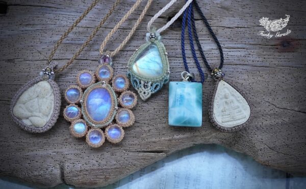 1/31(土)20時より新作天然石ネックレス5点を販売開始。 仏陀様ペンダント、ムーンストーン、ラリマーなど、 冬を彩る美しい天然石をご用意しました。